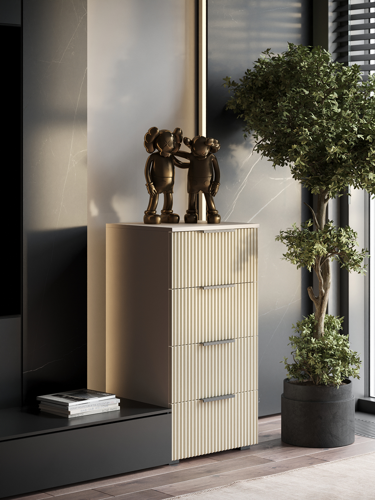 Комод Olympia для одежды, 4 ящика, цвет бежевый, габариты 45х90х40 см