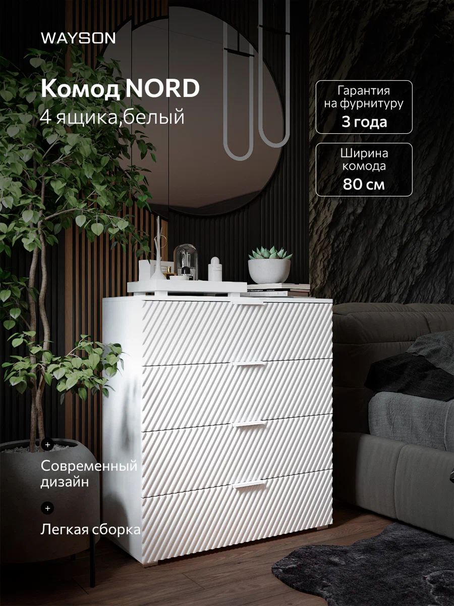 Комод WAYSON "NORD" – стильное и практичное решение для хранения. 4 вместительных ящика, качественное ЛДСП, универсальный дизайн.