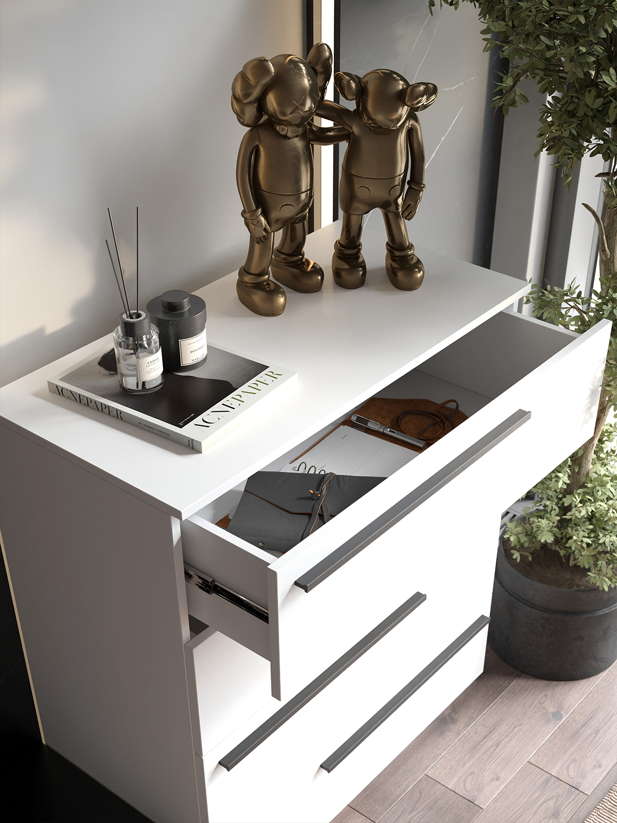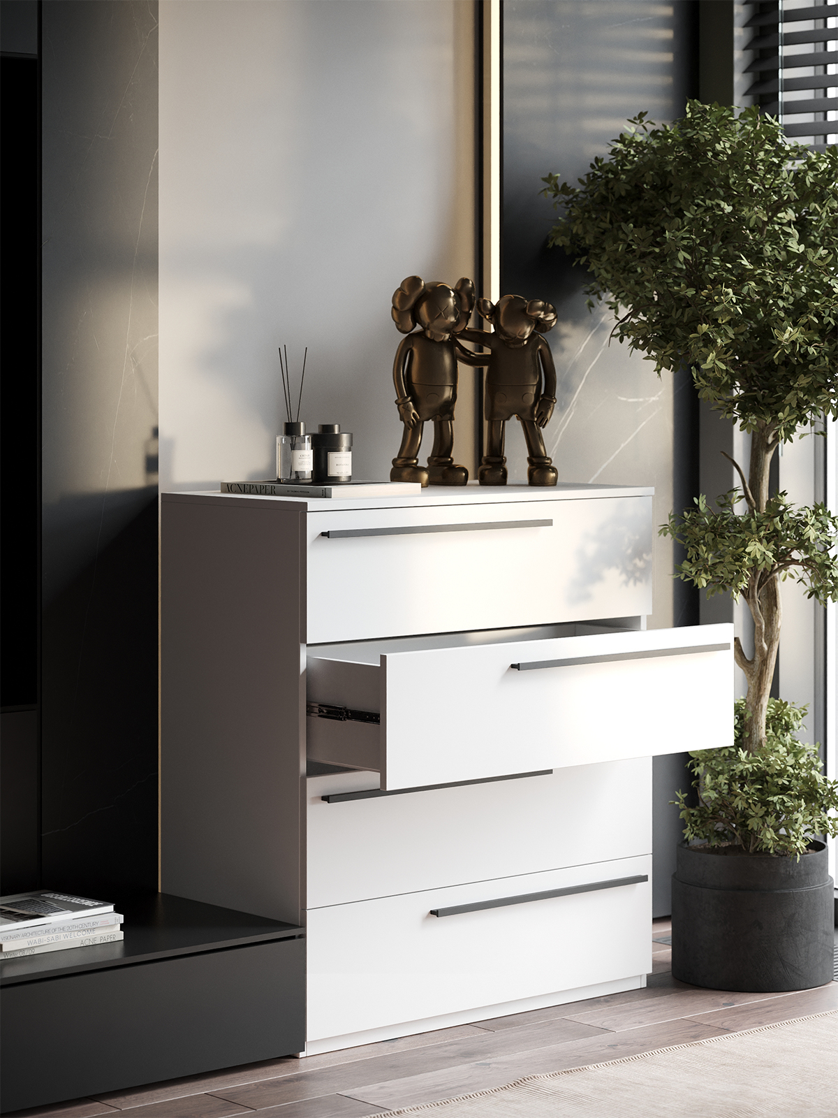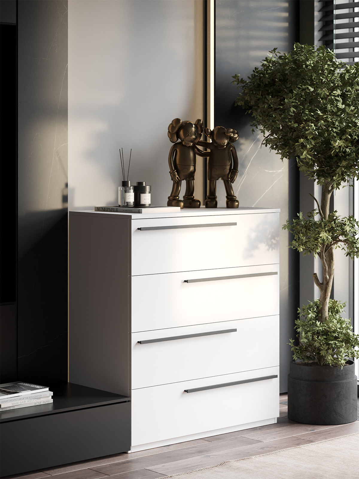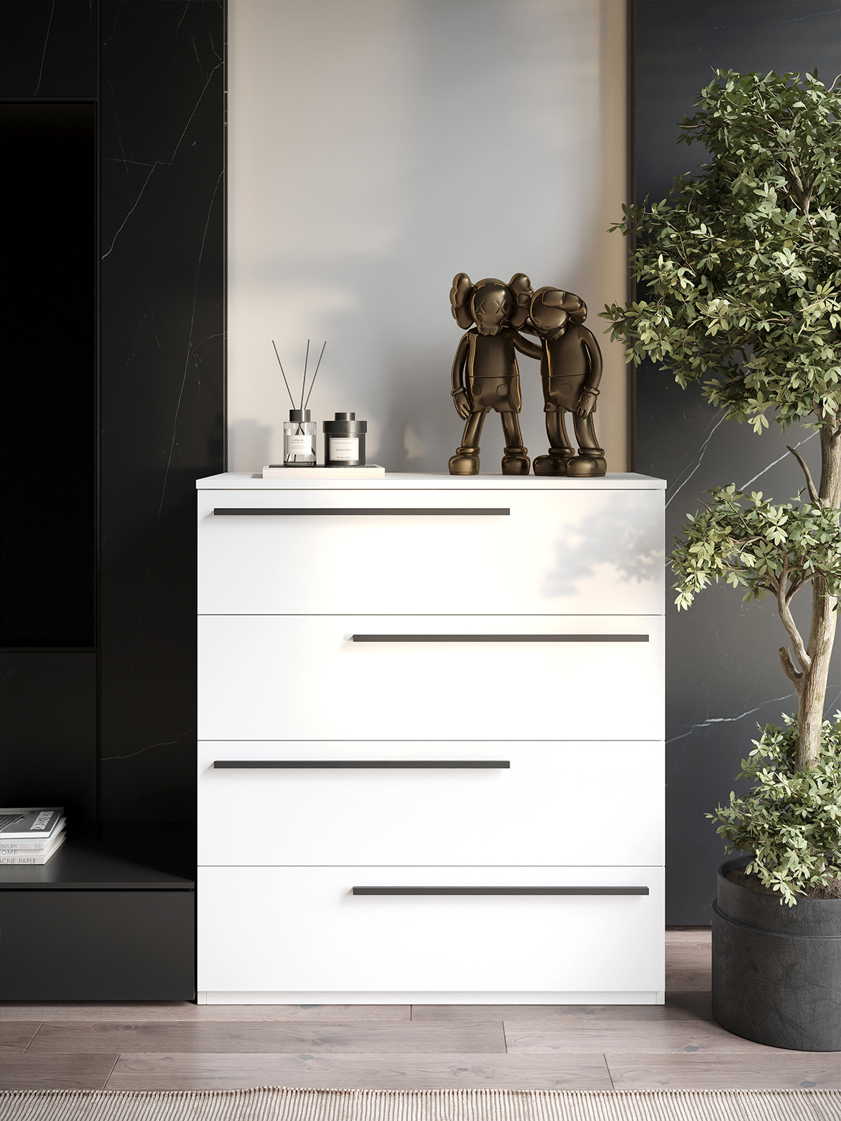 Комод SOHO для одежды, 4 ящика, цвет белый, габариты 80х90х40 см
