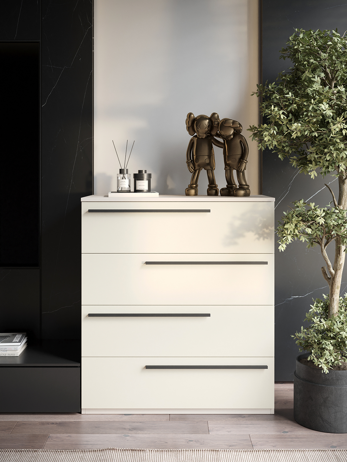 Комод SOHO для одежды, 4 ящика, цвет бежевый, габариты 80х90х40 см