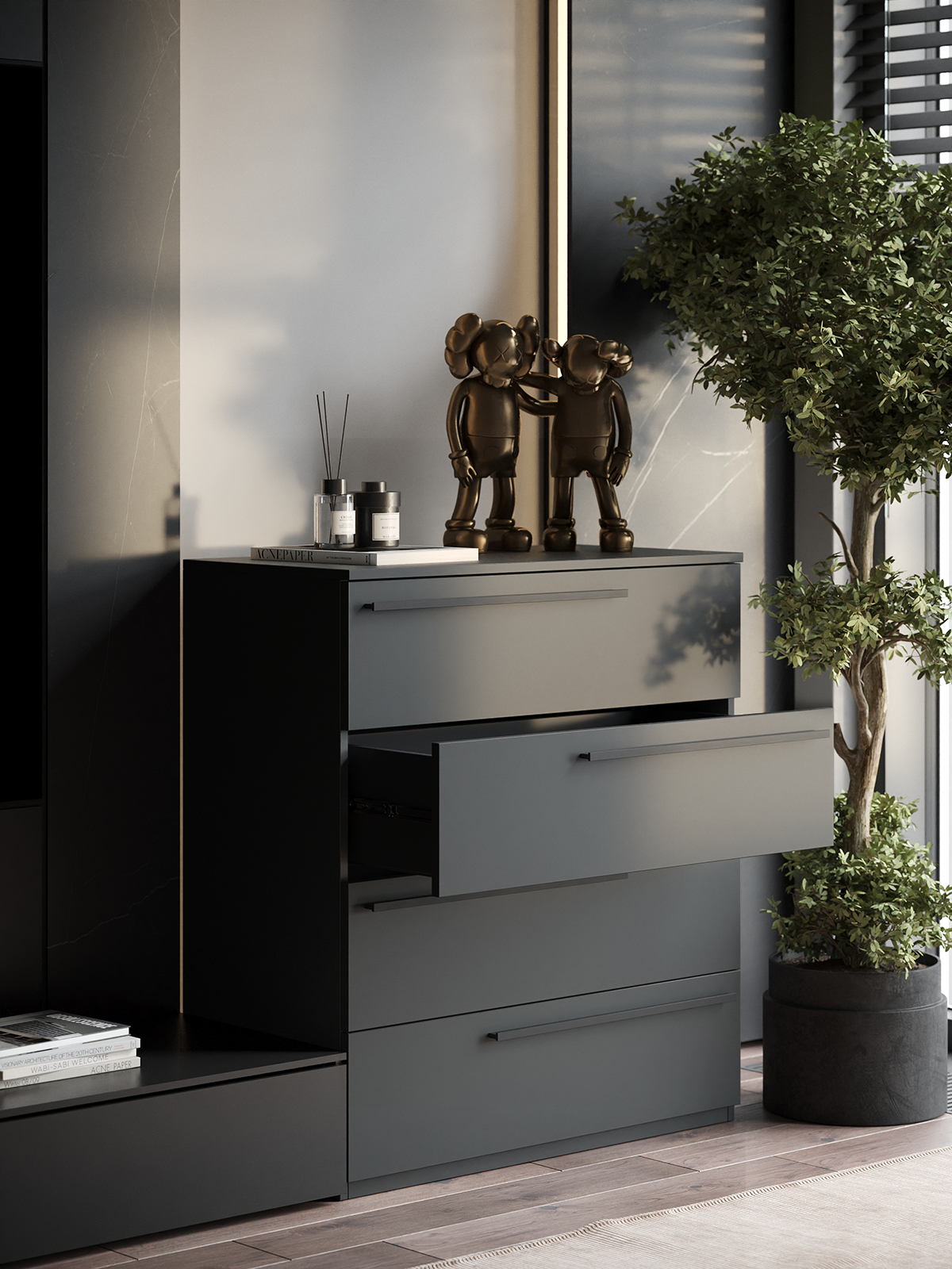 Этот комод — идеальное решение для оптимизации пространства в вашей квартире. Он удачно впишется в любой интерьер. Этот комод станет неотъемлемой частью вашей мебели, будь то прихожая, кухня или даже гостиная. Он прекрасно подойдет для хранения одежды, такую мебель удобно разместить даже в узком коридоре. Сочетая стиль и функциональность, наш комод обладает вместительными ящиками, что делает его отличным выбором для организации пространства. Устали от беспорядка? Положите туда одежду, уделив порядок вашему дому. Этот комод станет достойным помощником в хранении для детской. Игрушек много — места мало? Не беда! Всё разместится в ящиках.Это многофункциональная мебель, позволяющая навести порядок и сохранить уют. Комод — это больше, чем просто предмет мебели, это ваш идеальный помощник в создании гармонии и порядка в вашем доме.Используйте этот комод, чтобы сделать кухню более организованной. Мелкие предметы и кухонные принадлежности легко найдут свое место в его удобных ящиках. Практичность и стиль в одном предмете сделали этот комод популярным выбором для множества семей.Таким образом, этот комод станет центральным элементом вашей мебели. Его продуманный дизайн и функциональные ящики превратят даже самое узкое пространство в полноценную зону хранения. Независимо от того, нужно ли вам место для одежды, телевизора или игрушек, этот комод решит все ваши задачи по организации домашнего пространства.