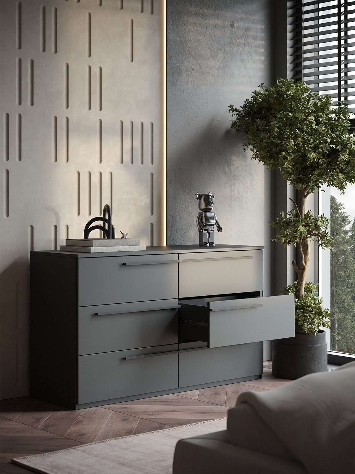 Комод SOHO для одежды, 6 ящиков, цвет серый, габариты 120х70х40 см
