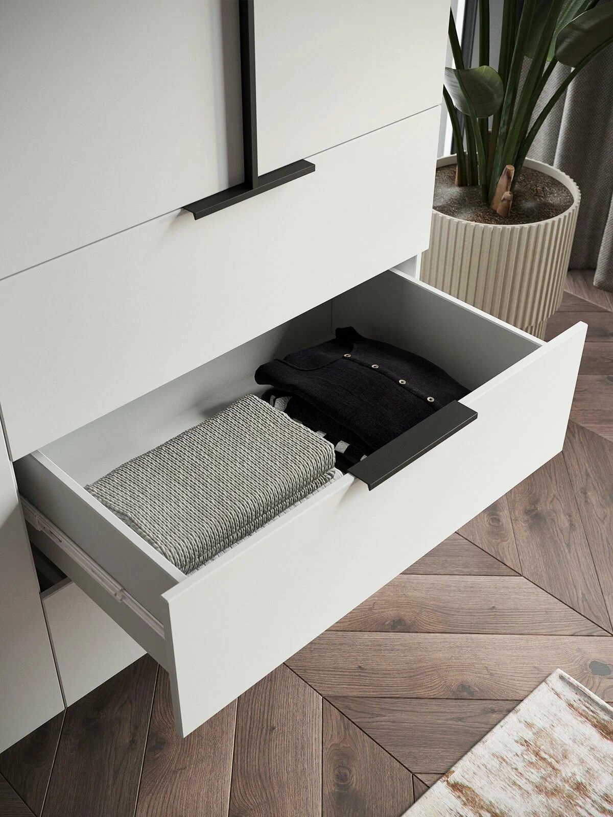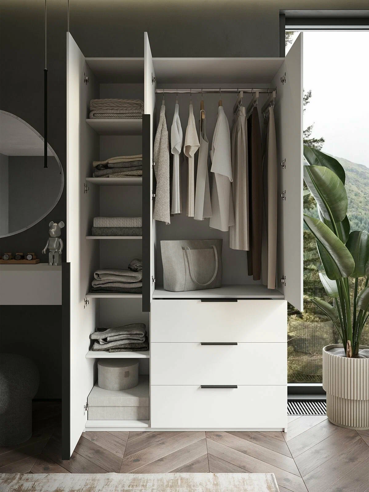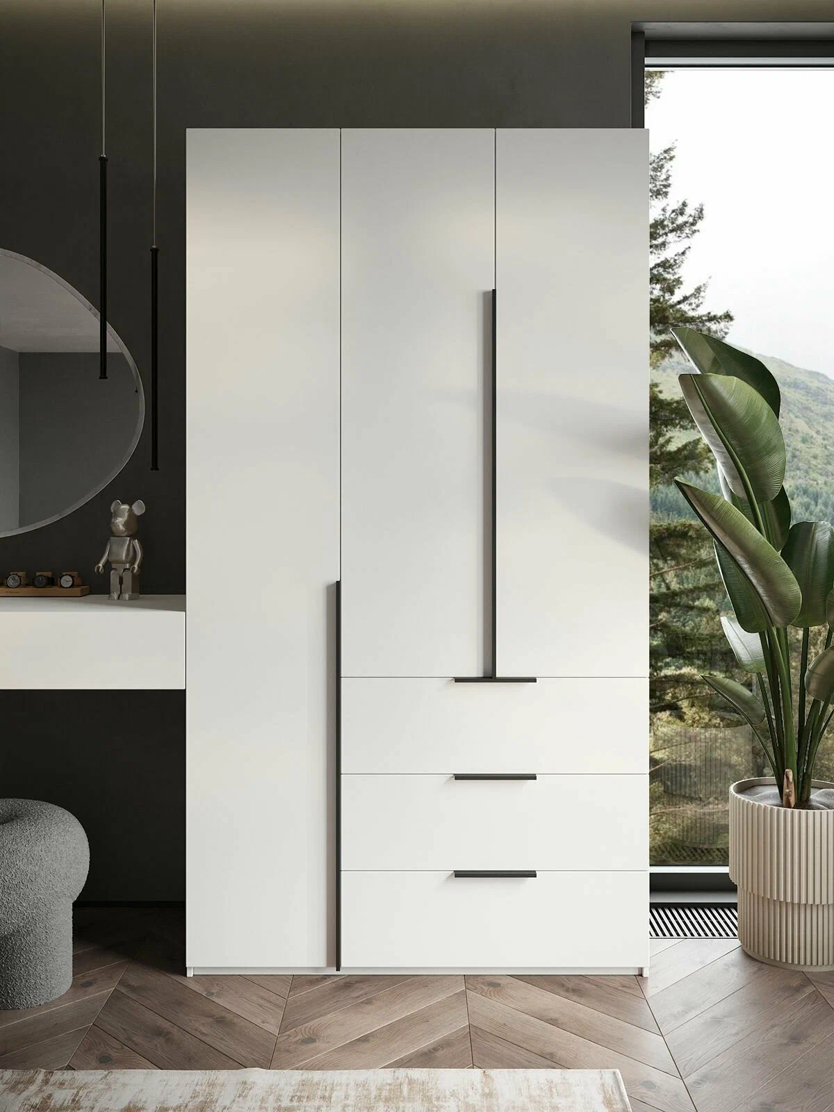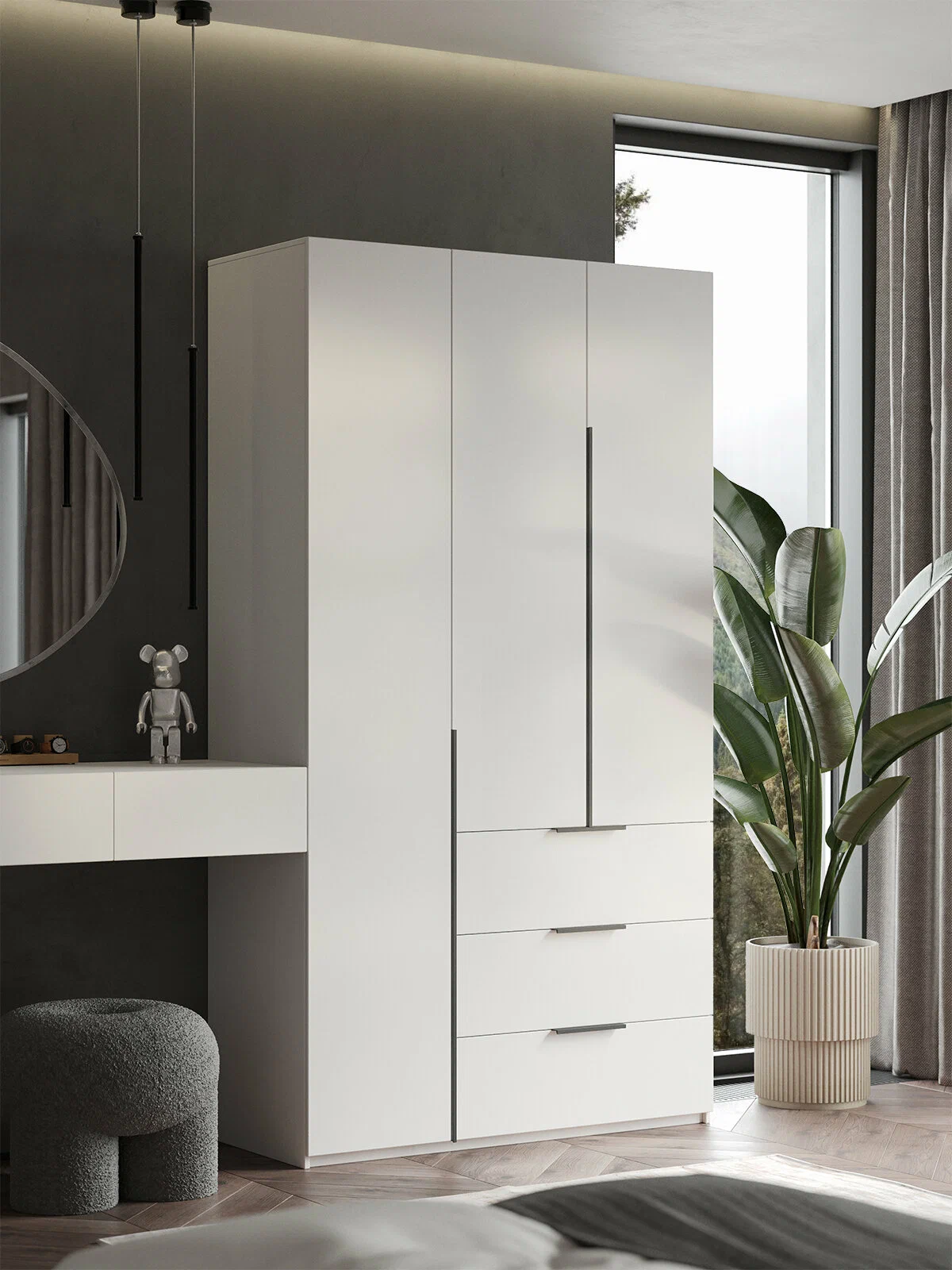 Шкаф Распашной Белый 120x220x52,5 SOHO с ящиками и ручками — качественный товар, который сочетает в себе надежность и современный дизайн.