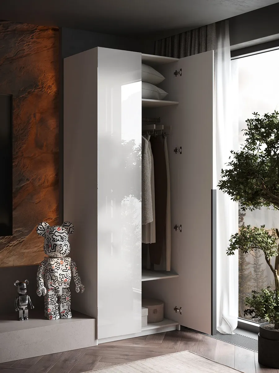 Шкаф Распашной Белый 81х220x52,5 SOHO с ручкой — качественный товар, который сочетает в себе надежность и современный дизайн.