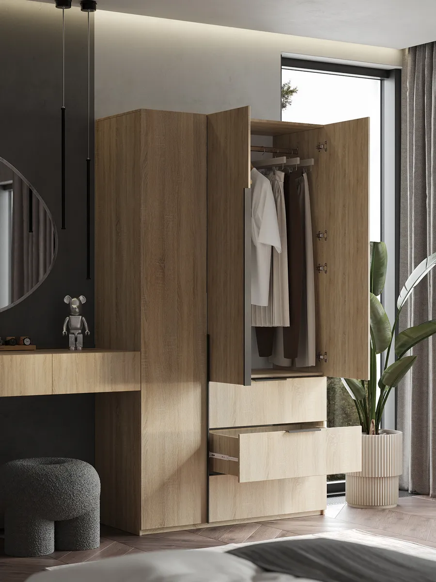Шкаф Распашной Бежевый 120x220x52,5 SOHO с ящиками — качественный товар, который сочетает в себе надежность и современный дизайн.