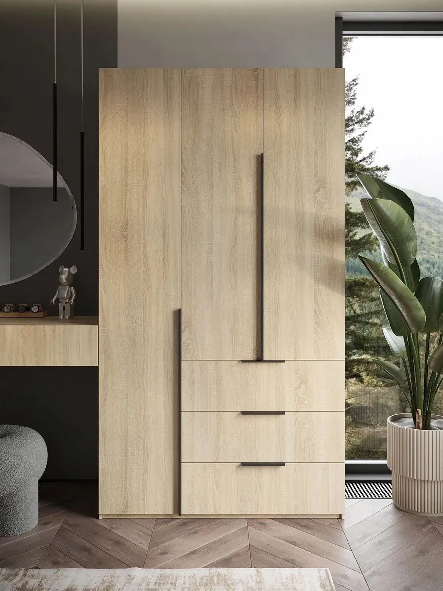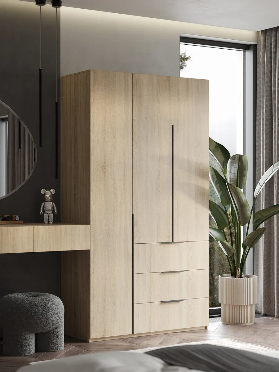 Шкаф Распашной Бежевый 120x220x52,5 SOHO с ящиками и ручками — качественный товар, который сочетает в себе надежность и современный дизайн.