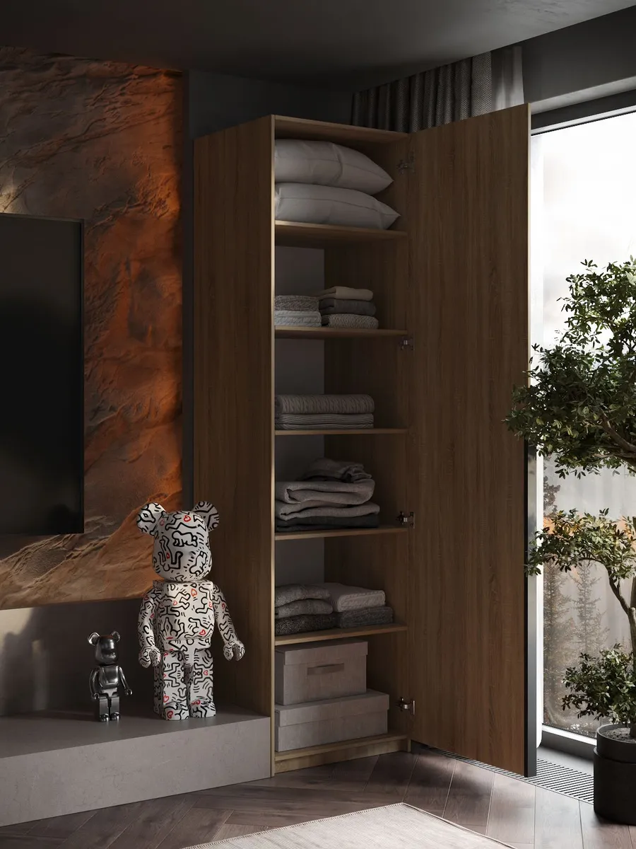 Шкаф Распашной Бежевый 61х220x52,5 SOHO с полками и ручкой — качественный товар, который сочетает в себе надежность и современный дизайн.