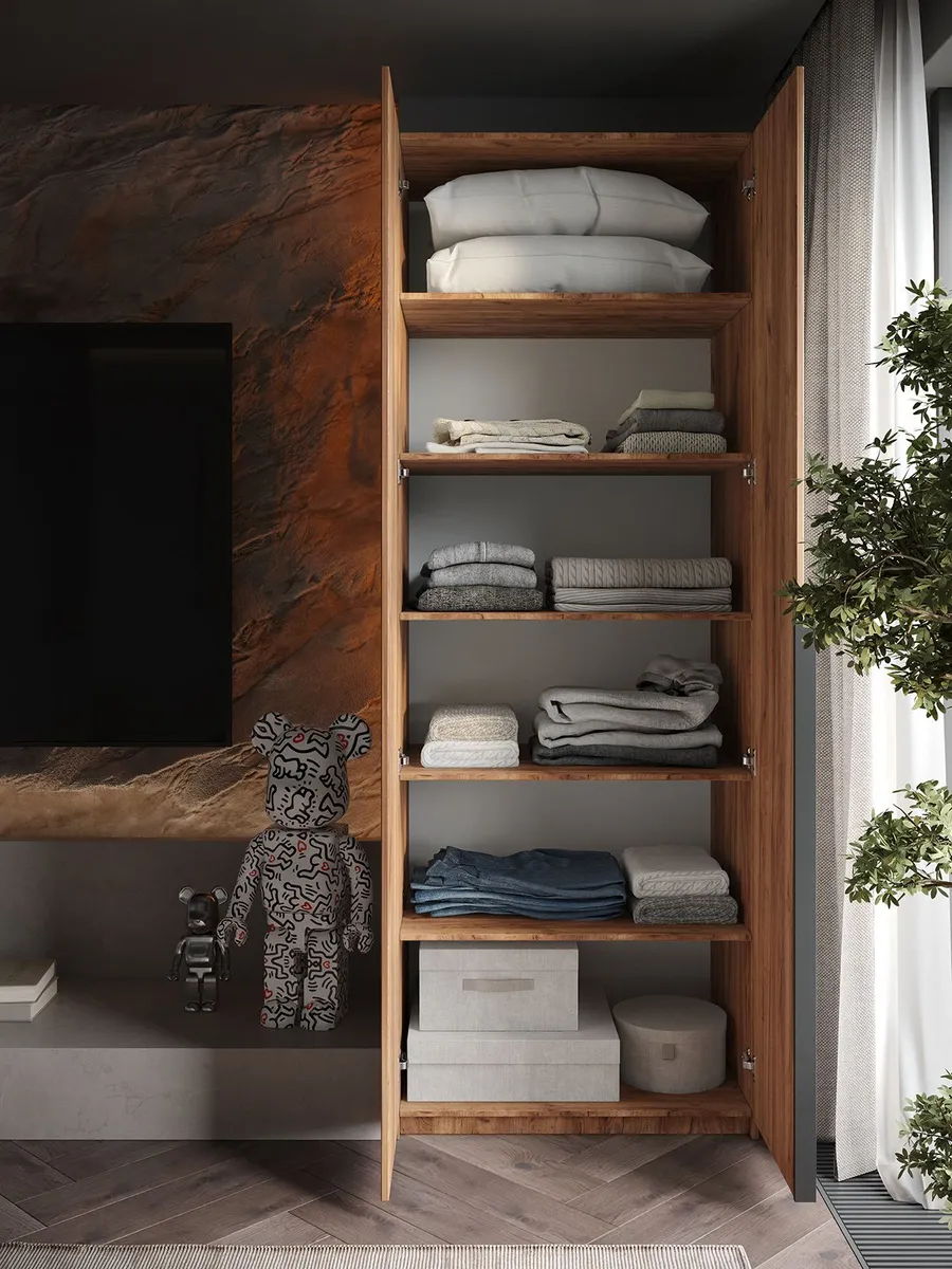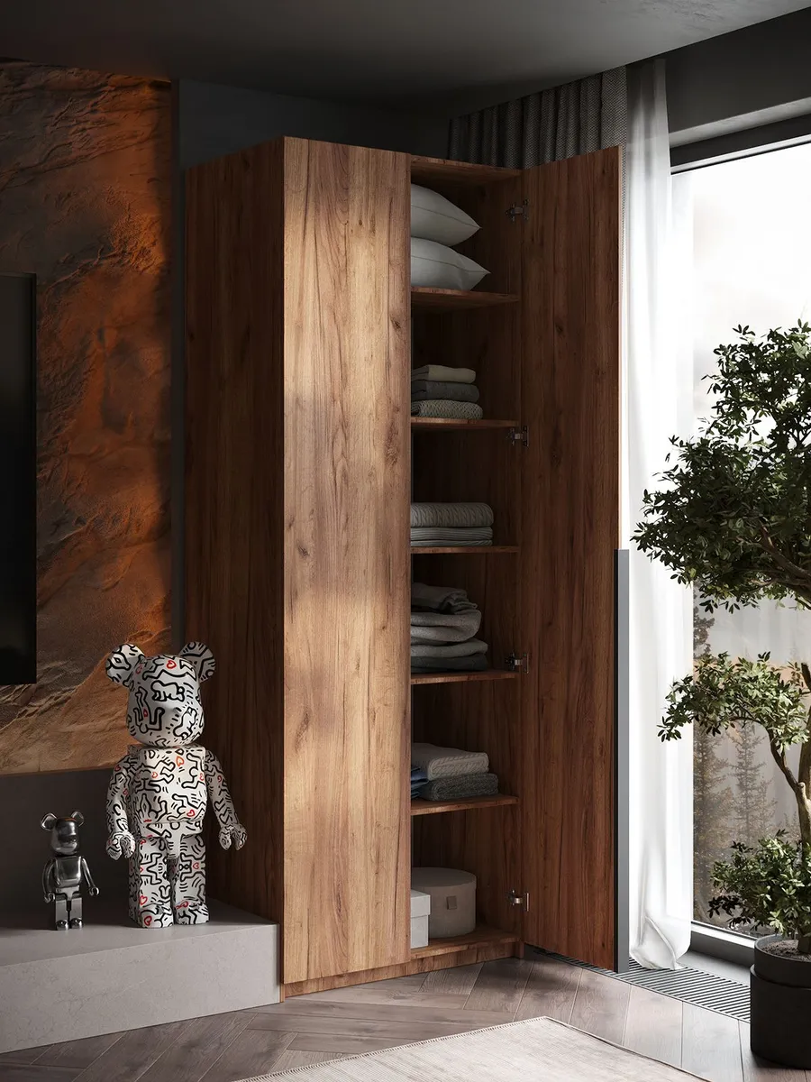 Шкаф Распашной Коричневый 81х220x52,5 SOHO полки и ручка — качественный товар, который сочетает в себе надежность и современный дизайн.