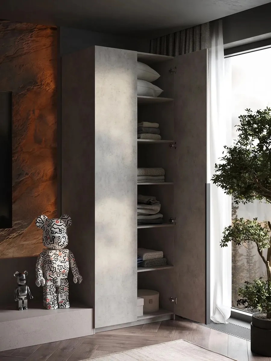 Шкаф Распашной Серый 81х220x52,5 SOHO с полками и ручкой — качественный товар, который сочетает в себе надежность и современный дизайн.