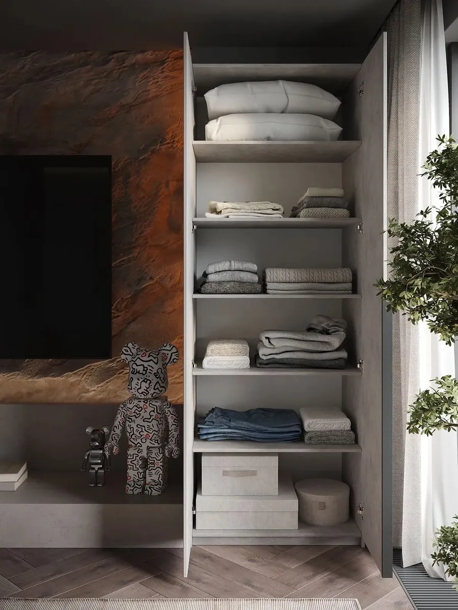 Шкаф Распашной Серый/Черный 81х220x52,5 SOHO полки и ручка — качественный товар, который сочетает в себе надежность и современный дизайн.