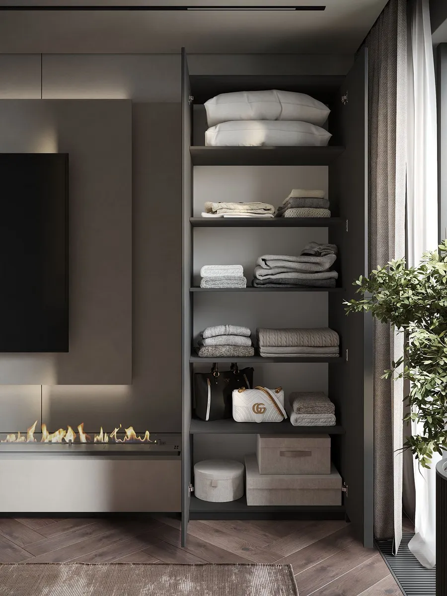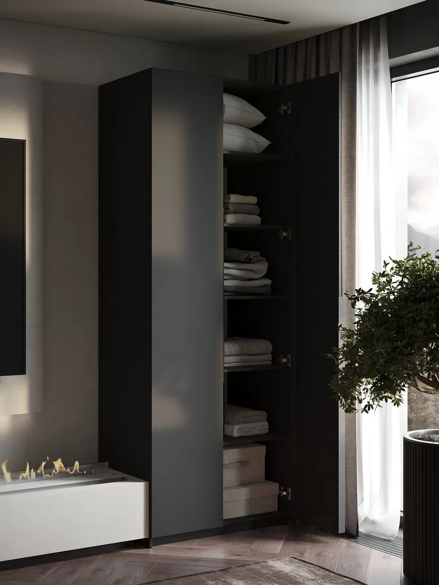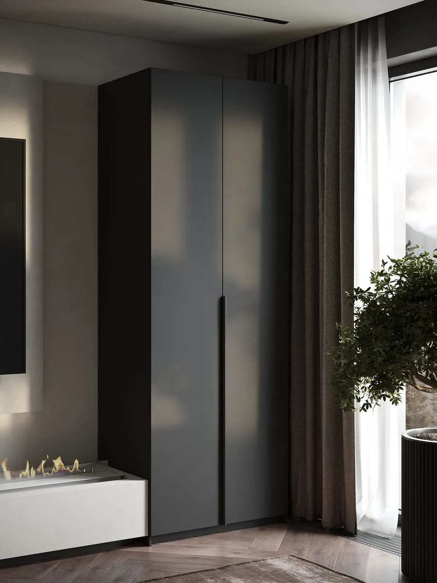 Шкаф Распашной Темно-серый 81х220x52,5 SOHO полки и ручка — качественный товар, который сочетает в себе надежность и современный дизайн.