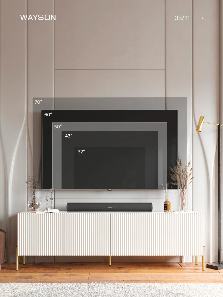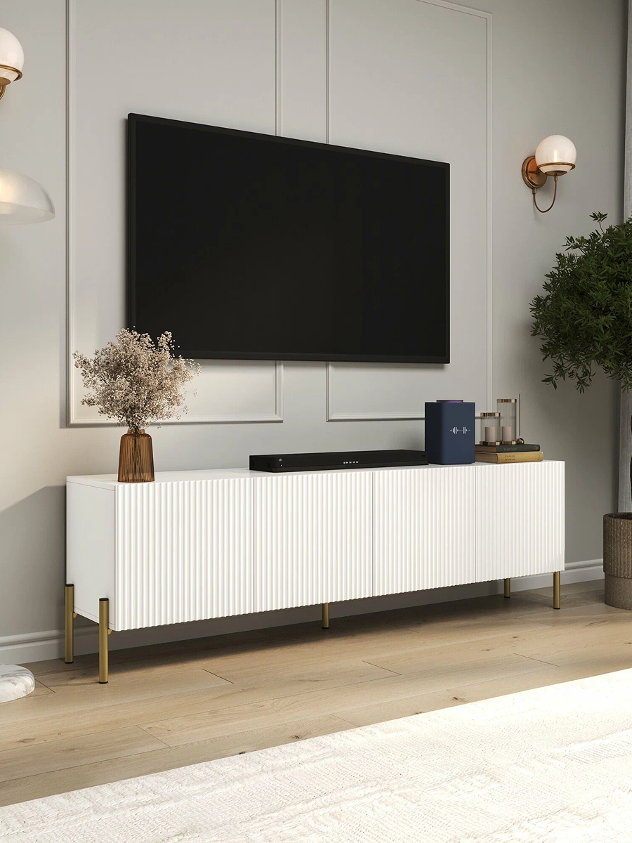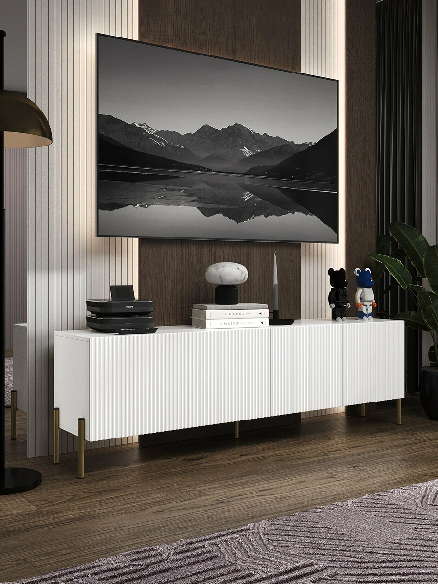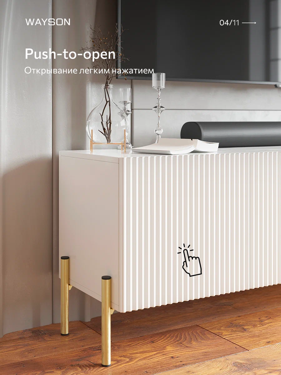 Тумба под телевизор бренда WAYSON белого цвета: современный стиль и функциональность Создайте уютную атмосферу в вашем доме с этой стильной подвесной тумбой под телевизор белого цвета. С размерами 180х57х36 см, она отлично впишется в любой интерьер, придавая пространству элегантность и современный вид. Изготовлена из качественных материалов, консоль имеет прочный корпус из ЛДСП толщиной 16 мм и фасад из МДФ, который покрыт пленкой. Это обеспечивает не только долговечность, но и легкость в уходе за поверхностью, позволяя сохранять идеальный вид на протяжении долгого времени. Изящная отделка фасада с фрезеровкой по образцу добавляет оригинальности и шарма, а современная система ручек Push Open позволяет легко открывать ящики, не нарушая минималистичный стиль. Шариковые направляющие с неполным выдвижением гарантируют плавное и тихое открытие ящиков, что делает использование консоли приятным и комфортным. Усиленные навесы для крепления к стене обеспечивают надежность и безопасность установки, позволяя максимально эффективно использовать пространство. Консоль станет прекрасным местом для размещения вашего телевизора, а также для хранения аксессуаров и мелочей. Добавьте изысканность и стиль в ваш дом с помощью консоли под телевизор, которая объединяет в себе функциональность и современный дизайн. Заказывайте сейчас и наслаждайтесь комфортом и элегантностью в вашем интерьере!